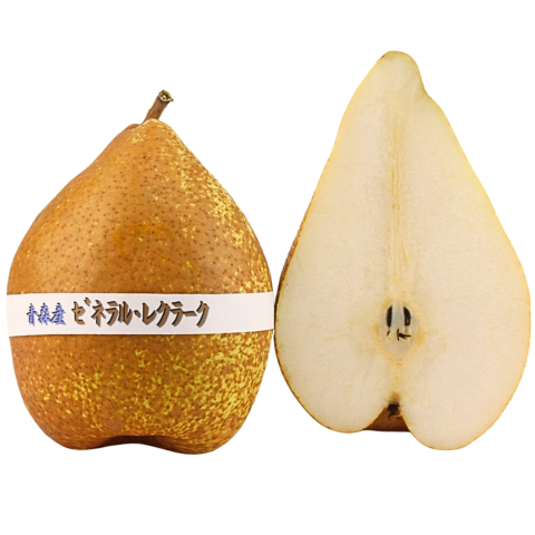 洋梨「ゼネラル・レクラーク」は、フランスの名品種「ドワイアンヌ・デュ・コミス」の自然交配から生まれた、由緒正しい西洋梨です。未熟なうちは皮が深い緑色をしていますが、熟すにつれて美しい黄金色へと変化し、まさに”高級洋梨”の名にふさわしい佇まいを見せます。