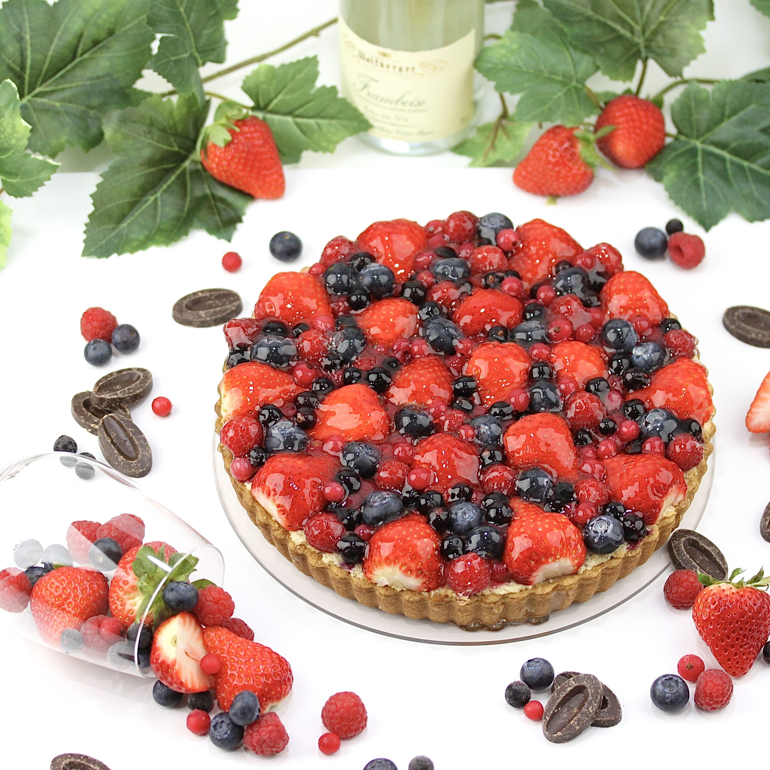 仕上げにいちご、ブルーベリー、フランボワーズ、グロゼイユ、カシスの5種のベリーを散りばめました。